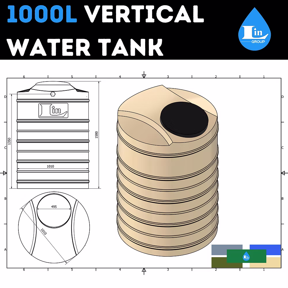 Compact yet efficient, the 1 000L Vertical Water Tank is ideal for smaller spaces while maintaining exceptional durability and safety. Its food-grade construction and algae-resistant design make it perfect for rainwater harvesting and everyday use. Like all Lin Tanks, it comes with a 10-year full replacement guarantee.