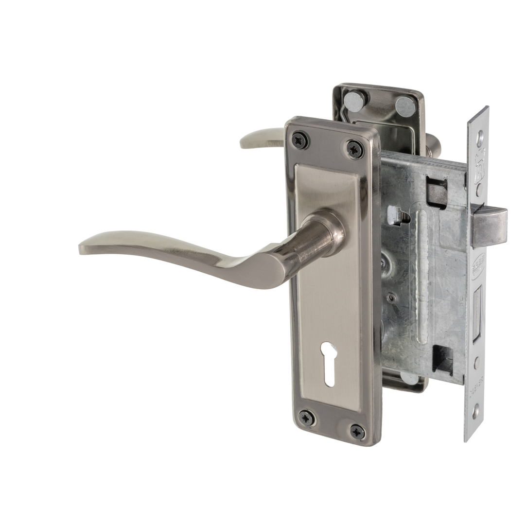 6 Inch – 2 Lever Lockset Lady Star 6″ SAT&BLK NICKL x Q:1