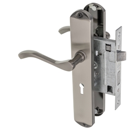 It features a large backplate and a robust 3-lever mechanism, ideal for doors leading outside.