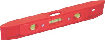 A plastic level with 3 fixed vials – 1 horizontal, 1 vertical and 1 at 45°