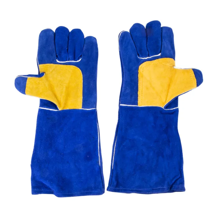 Premium Blue Dyed Welding Glove; Gunn Cut; Wing Thumb Fully Lined With A Reinforced Palm; 40Cm Long; Designed For Use In Welding Related Operations.